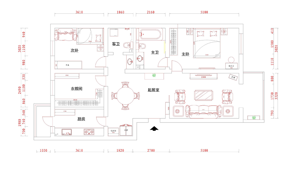 房屋戶型方正,南北通透,適合做多種風格設計,本案構思的是美式鄉村風格。