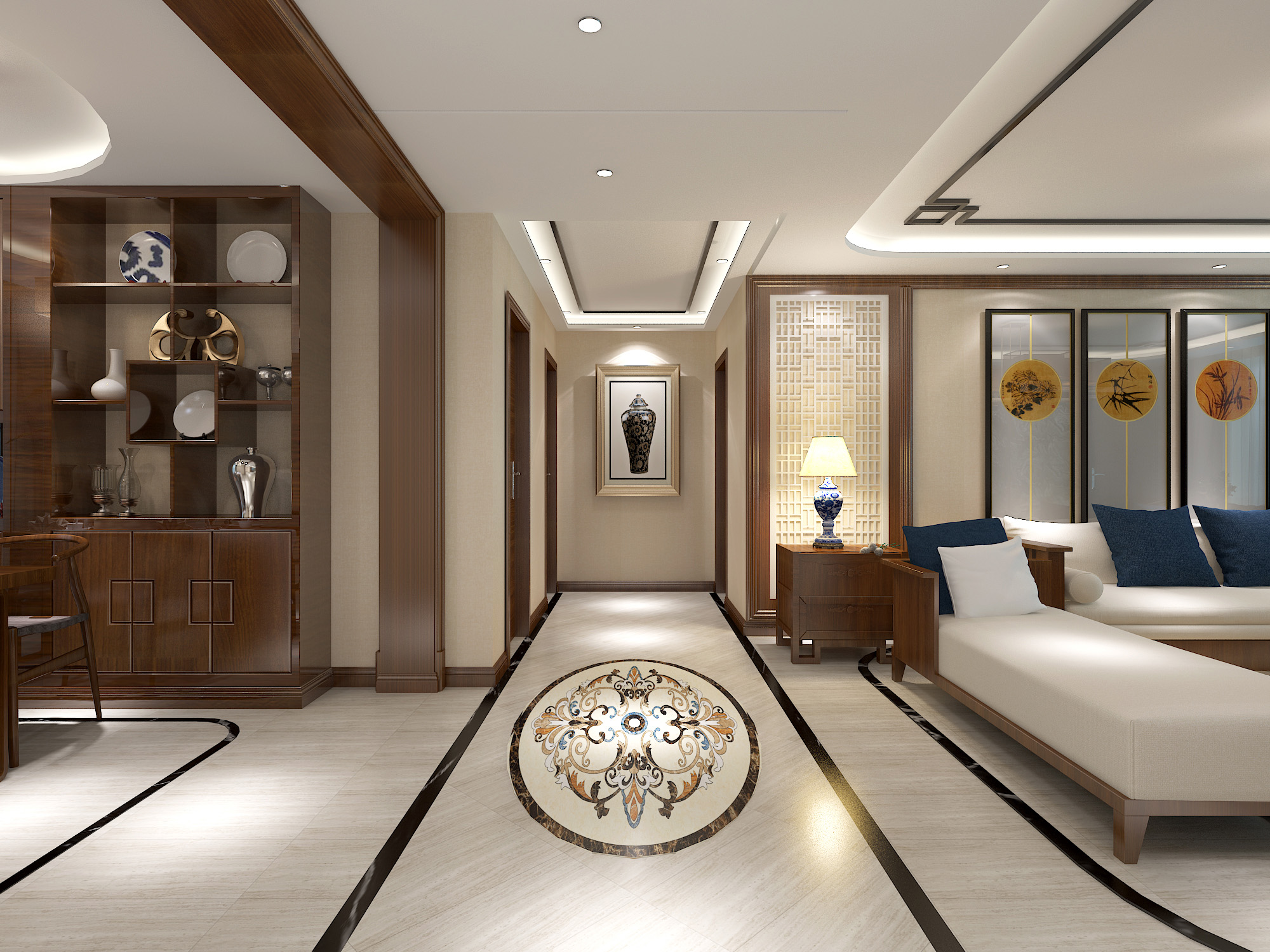 本案中的145平米的四居室整體采用了中式風(fēng)格裝修,過對傳統(tǒng)文化的解讀,將現(xiàn)代元素與傳統(tǒng)元素結(jié)合,以現(xiàn)代人的審美需求來打造富有傳統(tǒng)韻味的細(xì)節(jié)。風(fēng)塵俱靜,禪味悠長。同風(fēng)格案例:更多>>